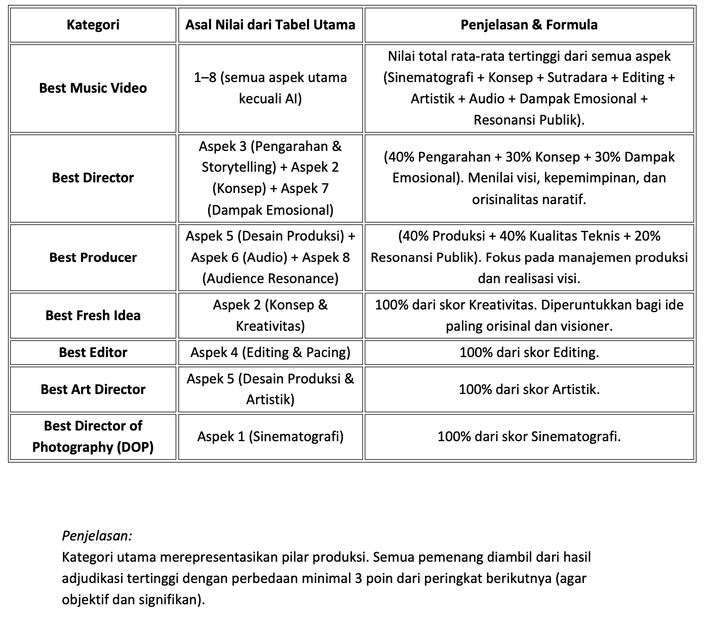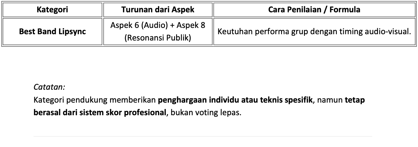 Setiap penghargaan — baik utama, pendukung, maupun spesial tetap punya dasar ilmiah dan profesional bukan sekadar voting atau preferensi subjektif.