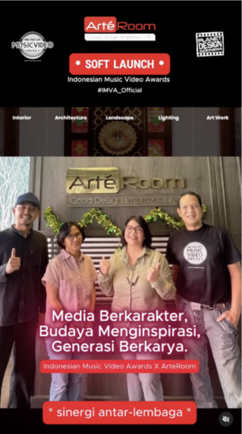 Kolaborasi Arté Room >< #IMVA_Official – Indonesian Music Video Awards, member of Planet Design Indonesia memposisikan desain interior sebagai bagian integral dari proses kreatif video music, bukan sekadar latar visual, melainkan ruang naratif yang membentuk emosi, ritme, dan identitas karya.