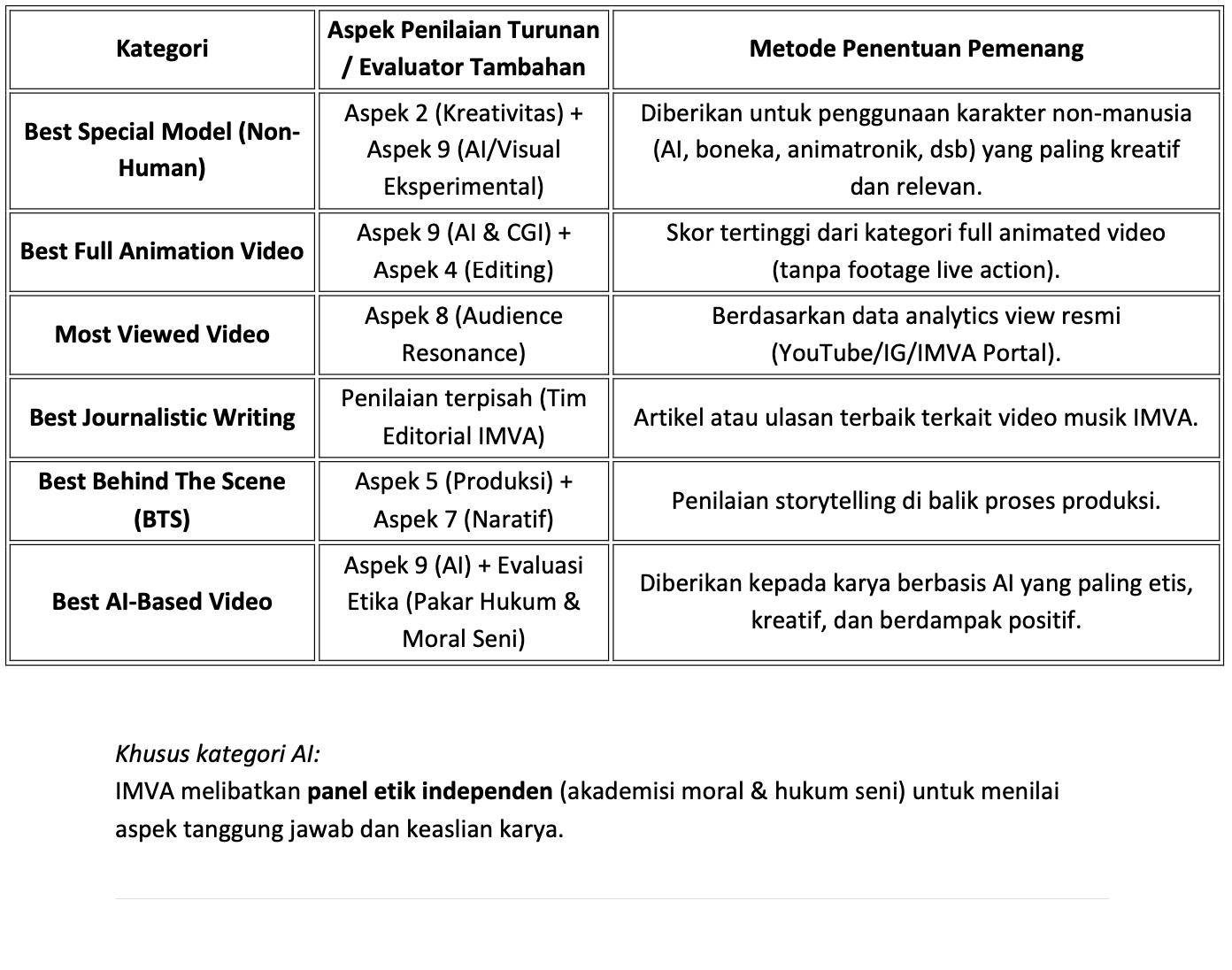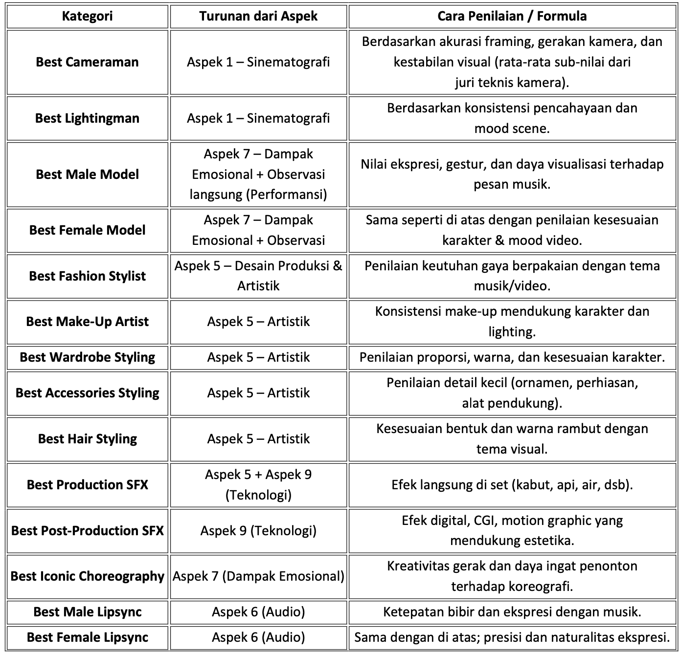 Setiap penghargaan — baik utama, pendukung, maupun spesial tetap punya dasar ilmiah dan profesional bukan sekadar voting atau preferensi subjektif.