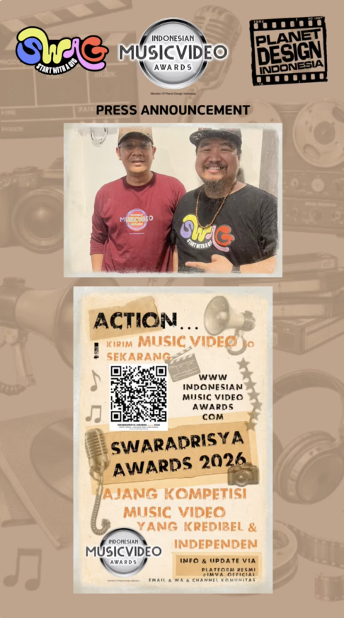 Bersama #IMVA_Official – Indonesian Music Video Awards, member of Planet Design Indonesia, kolaborasi ini membuka jalur dari scene ke arsip, dari gig ke karya, dan dari komunitas ke panggung apresiasi.